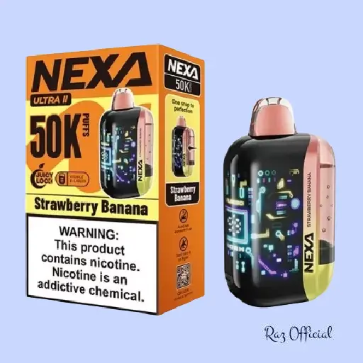 The Strawberry Banana Nexa Ultra II offers a smooth fruit blend, long-lasting performance, and smart features in one device. It is ideal for users who want a simple, reliable vape with consistent flavor and minimal effort.